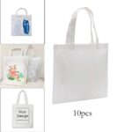 10x White Sublimation Non Woven Fabric Shopping Bag Heat Press Printable Custom Grocery Tote Bag with Handles for DIY Decorating