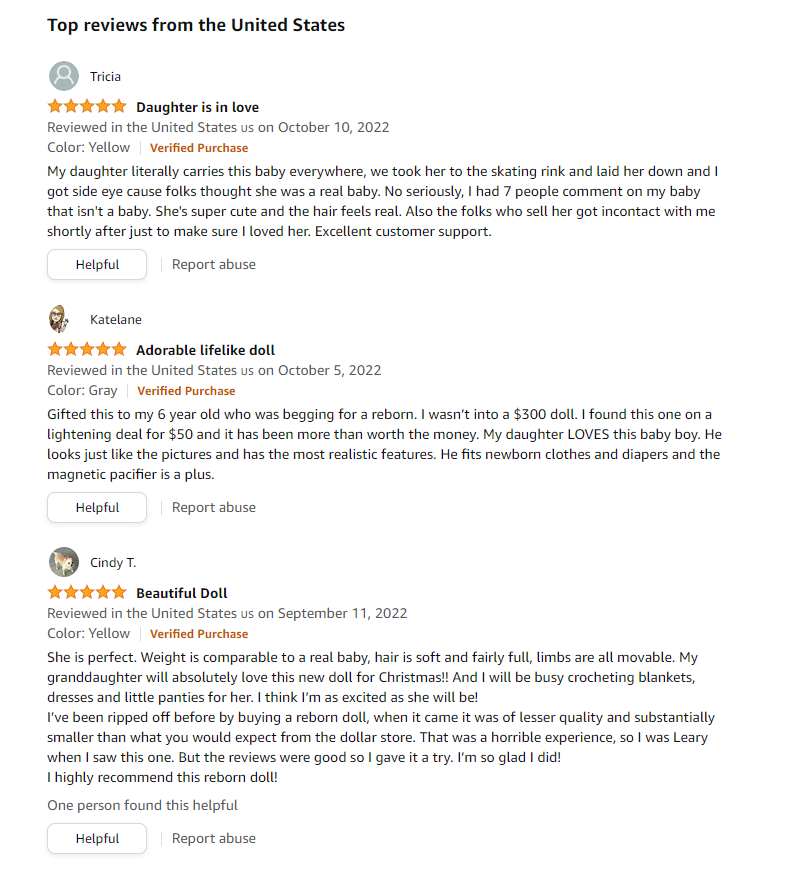 • Size: 20 inches(50 cm) from head to toe, weighs about 2.65 lbs(1.3 kg). It fits into newborn size clothes, strollers, diapers, and other baby accessories