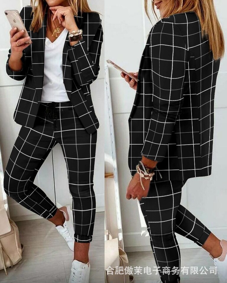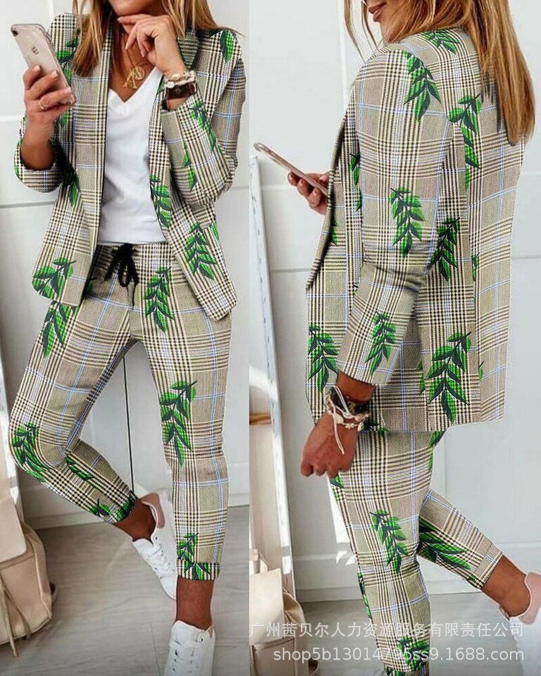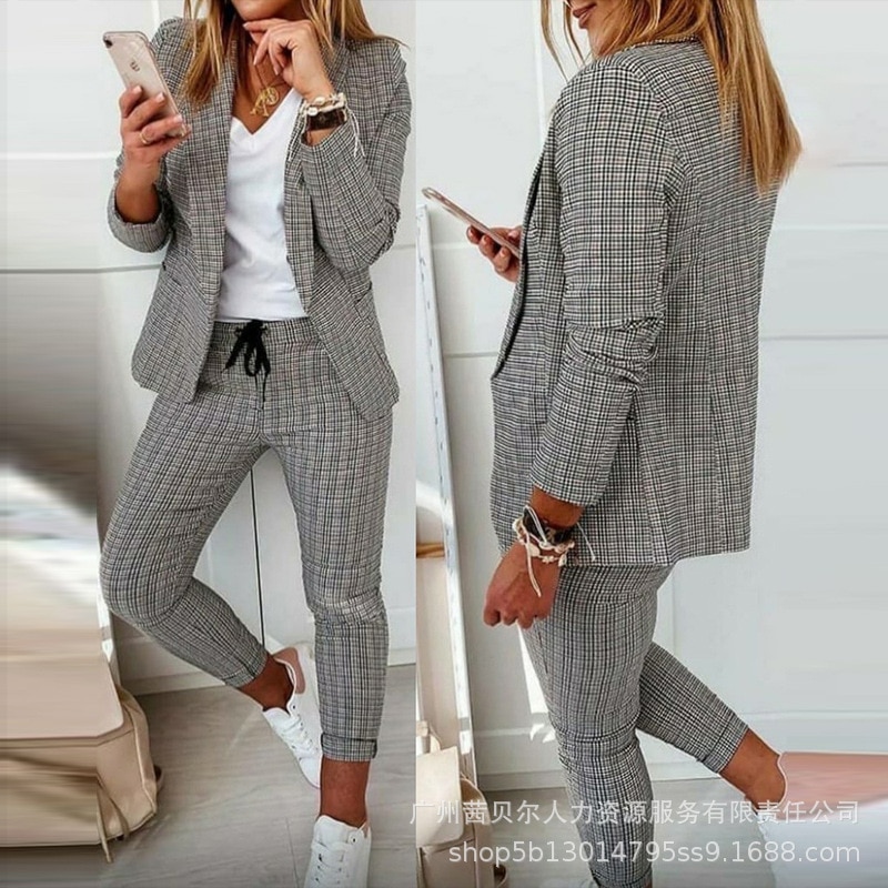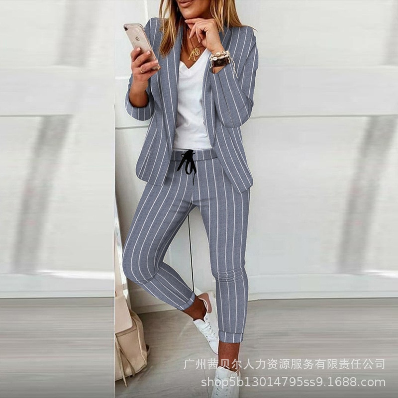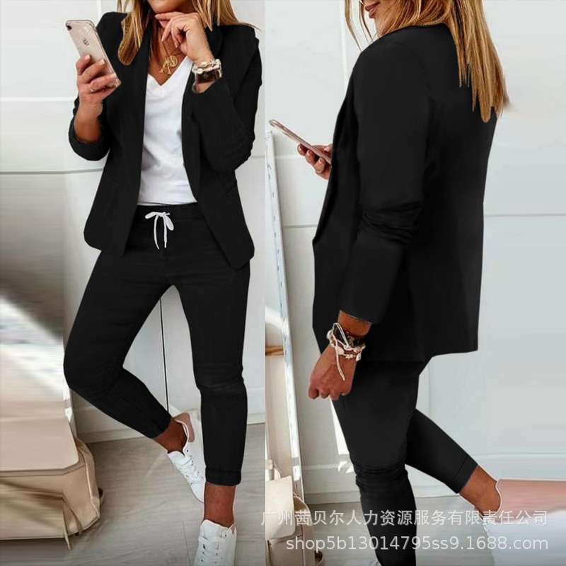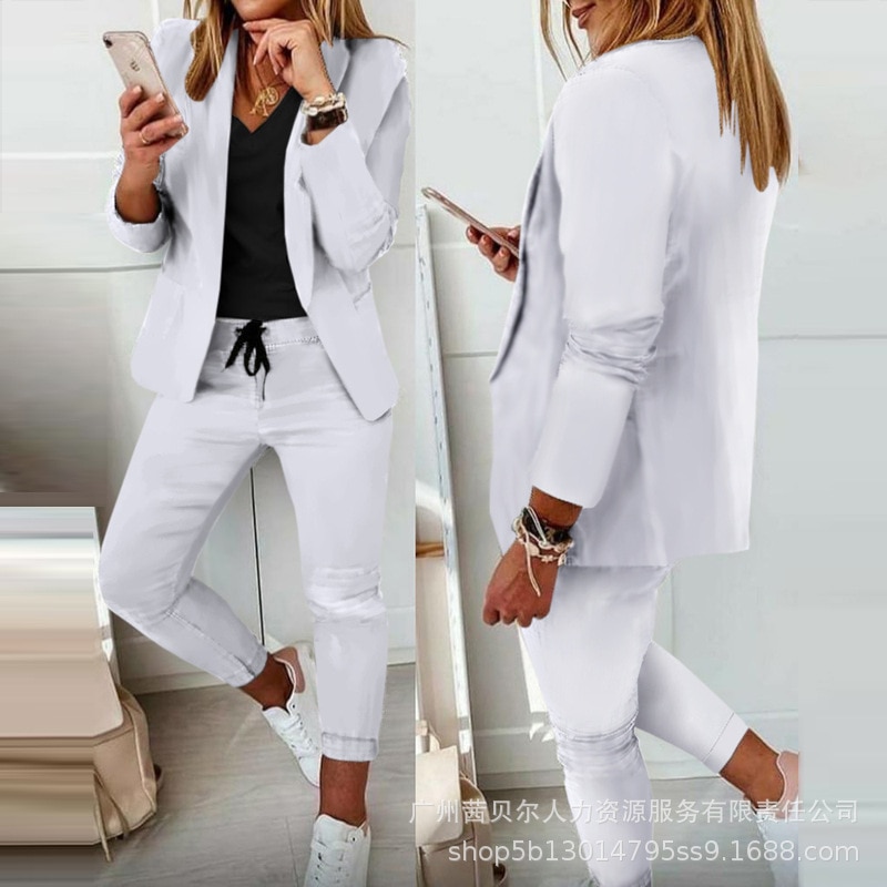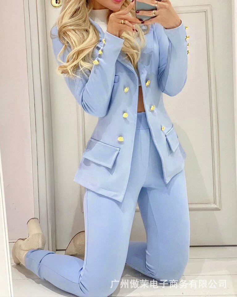 Home Office Products Women's Lapel Double-breasted Blazer + Trousers Set