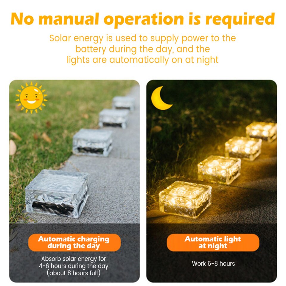 [Solar Powered] The solar brick light has a solar panel that has high conversion efficiency, and it can work for 6-8 hours at night only need 8 hours to fully charge under full direct sunlight.