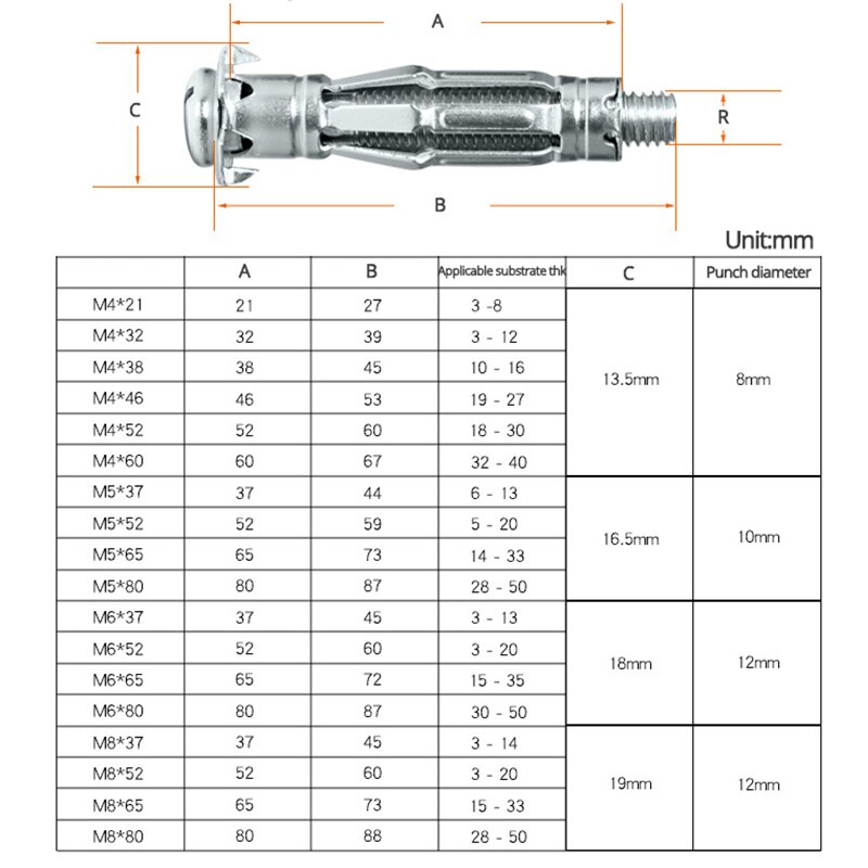 M4X21(20pcs), M4X32(20pcs), M4X46(20pcs), M4X52(20pcs), M4X60(20pcs), M5X37(20pcs), M5X52(20pcs), M5X65(20pcs), M5X80(20pcs), M6X37(20pcs), M6X52(20pcs), M6X65(20pcs), M6X80(20pcs), M8X37(10pcs), M8X52(10pcs), M8X65(10pcs), M8X80(10pcs) |
