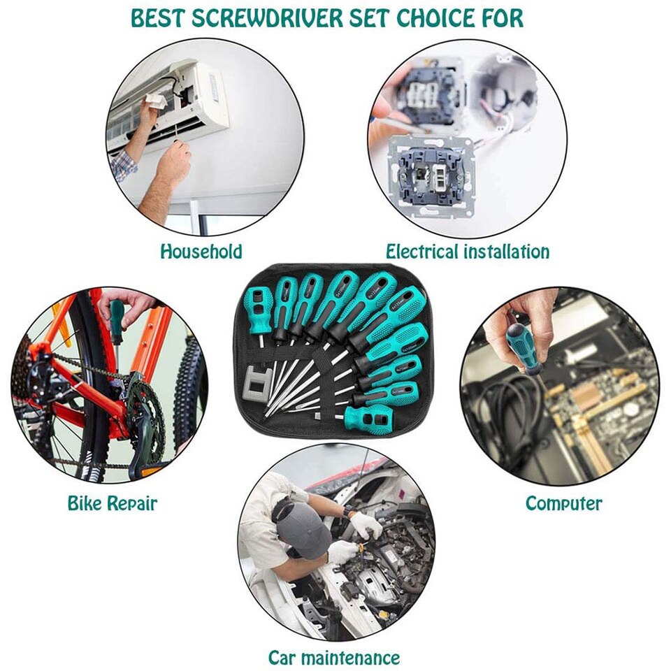 ⚒️【Multiple Application Scenarios:】 Screwdriver sets are available in various sizes and are essential for home use. They are very suitable for the maintenance needs of household electronic products, furniture, automobiles, motorcycles, bicycles and other household products.