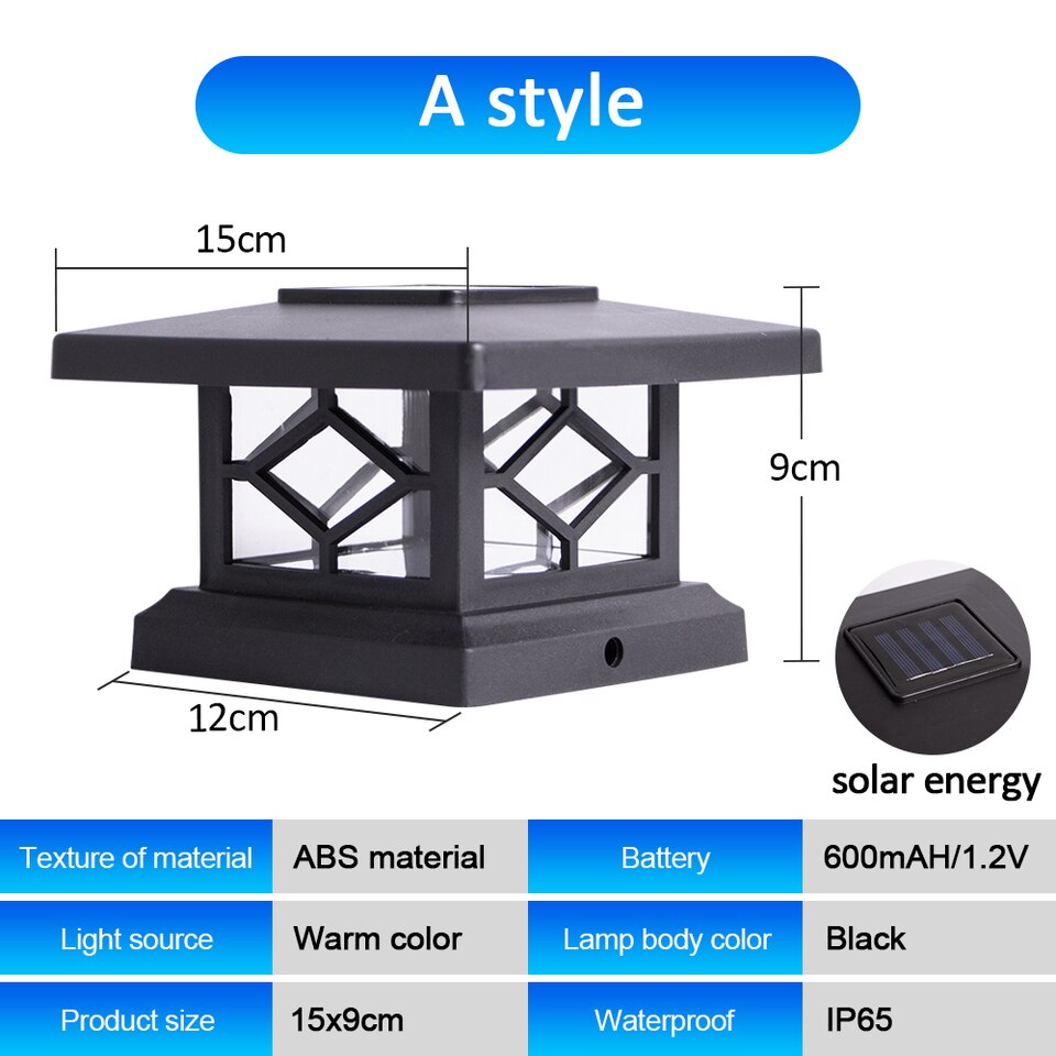 Manufactured from durable, vinyl (PVC) the post lights will not fade, crack. Each cap offers a monocrystalline solar panel, battery stays lit for up to 8 hours after charged in the daytime for 6-8 hours under the sun, and for many years of maintenance-free reliability.