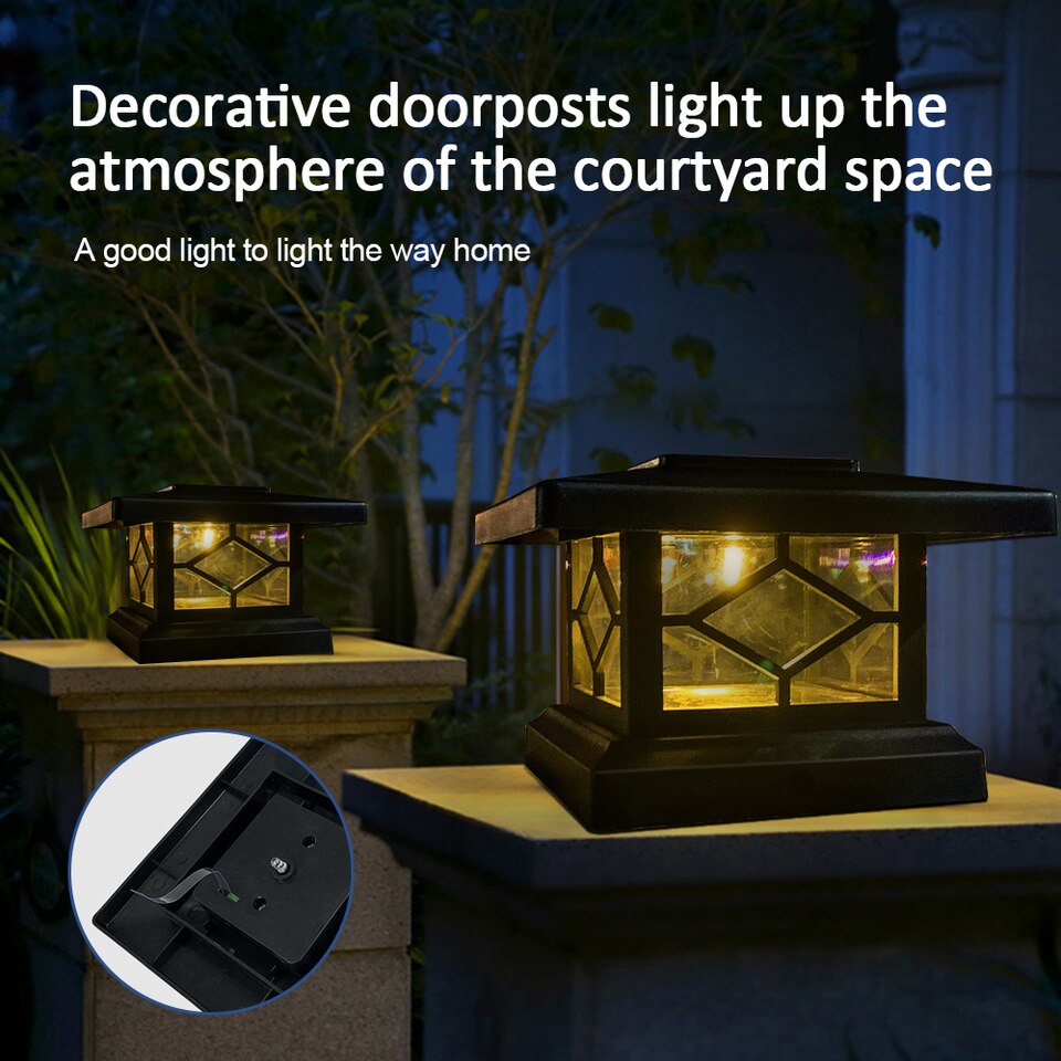 Add an elegant touch to your outdoor spaces with classic solar powered post lights. they will cast a rich ambient light that will Automatically light up at dusk creating a picturesque landscape for your fence, porch or deck.
