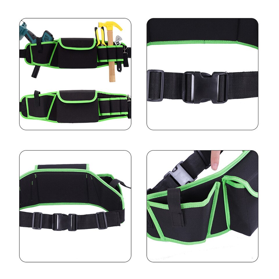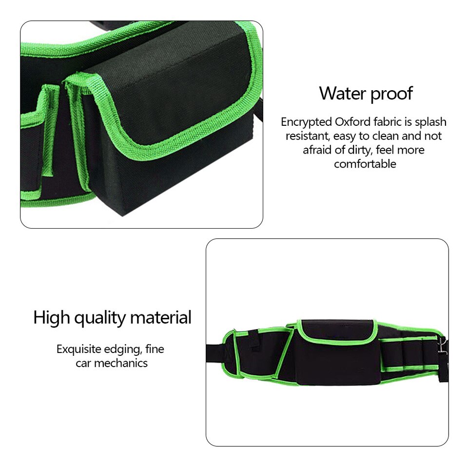 1、Multi-pocket Storage: This pocket is equipped with 3 tool pockets, a tool pocket and an electric drill pocket for easy carrying of various tools and parts.