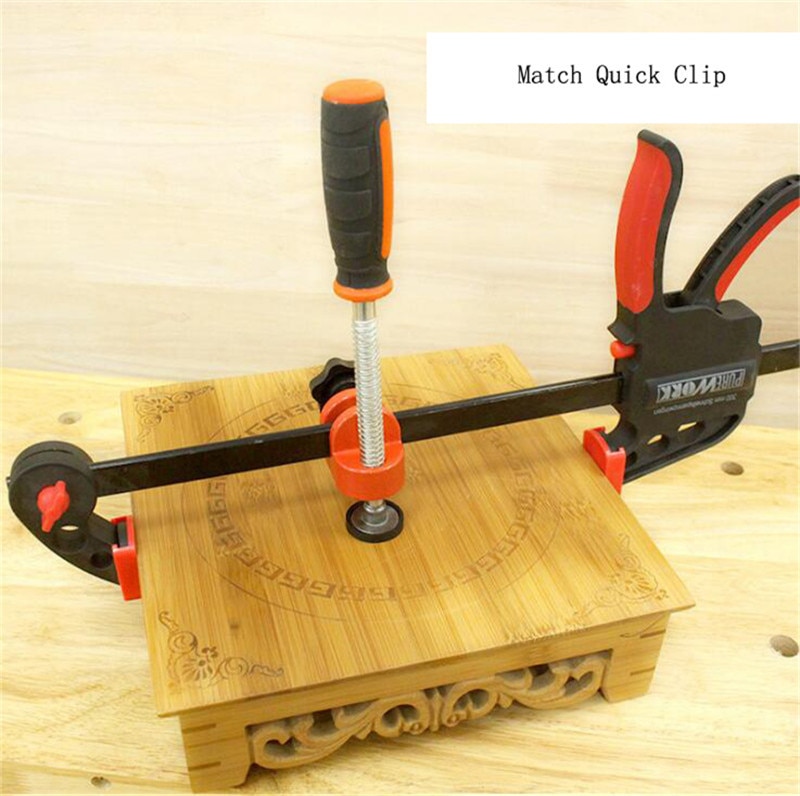 Description : Woodworking Edge Clamp F Clamp Clamp Function Expansion Auxiliary Tool Fixing Clamp Features : 1. Carbon steel quality, high hardness, corrosion resistance, durable 2. With a set of plastic sleeve to prevent the clamping of the workpiece 3. screw, high hardness, clamp holding force is not easy to break Specification : Material: carbon steel Clamping plate with woodworking side clip Product size: 23.50x 4 x 2 cm Package Includes : 1 x Clamp |