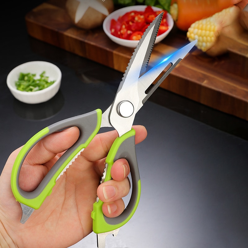 Product Description High-quality materials: Made of high-quality stainless steel, easy to use, easy to clean and long service life. Modern design: Comfortable, flexible handles are designed for left or right hand use. The screws can be adjusted to facilitate the use of different scenes. Versatile: Our cooking scissors perform flawlessly in all major kitchen tasks, such as poultry, meat cutting, chicken, poultry bones, vegetables, fish, herbs, pizza and more. Suitable for kitchens, crafts, gardening, etc. Unique quality: sturdy, thick and sharp.